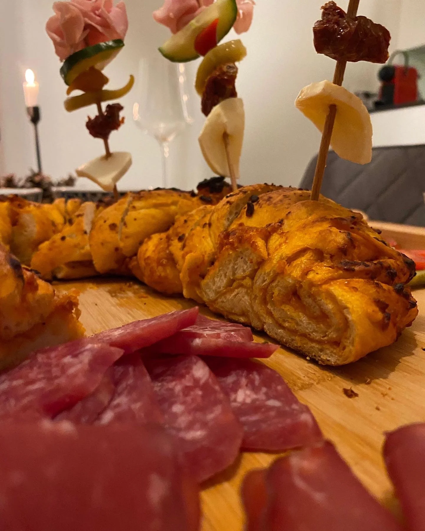 Apéro Zeit - die schönste Zeit des Tages. Wir haben für dich ein super leckeres Rezept. Die Idee vom Apéro-Brotkranz haben wir von Betty Bossi . Wir haben das Rezept ein wenig abgeändert. Mit leckerem Pesto von Barilla. Perfekt für jeden Apéro und ein echter Hingucker.